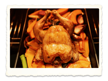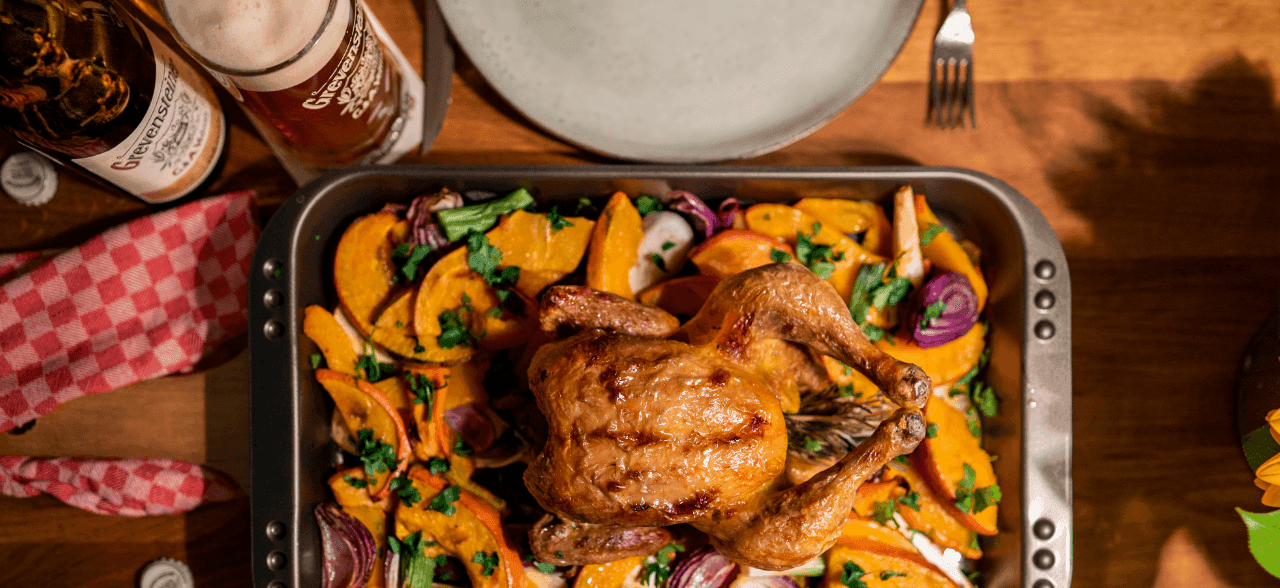 Grillhähnchen mit herbstlichem Ofengemüse