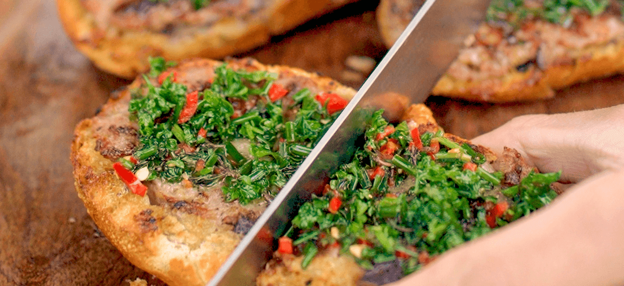 - Zum Abschluss die Sauerländer Chimichurri auf den frisch gegrillten Brötchen verteilen - fertig sind die gefüllten Grillbrötchen!