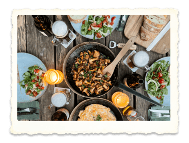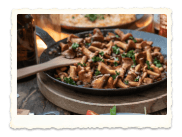 - Die Pfifferling-Sahne-Mischung auf Tellern anrichten.