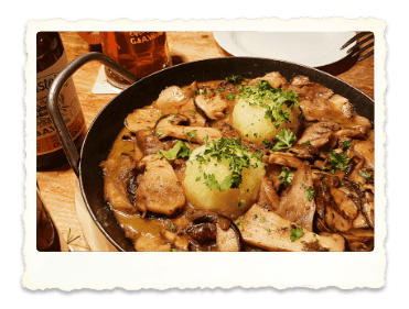 - Direkt in der Pfanne mit kühlem Grevensteiner Landbier servieren.